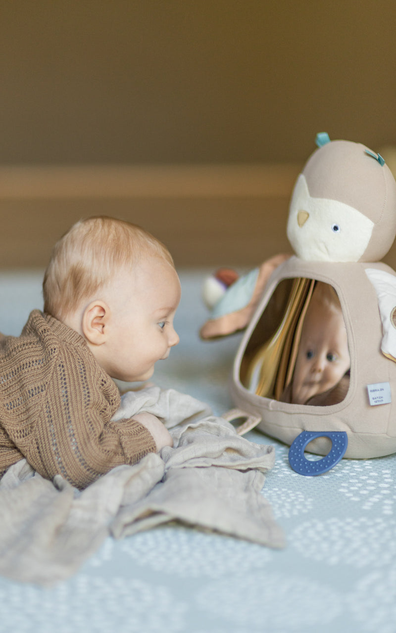 - Variér omgivelserne, så dit barn nogle gange leger på stuegulvet, andre gange på et tæppe, en madras eller endda ude på græsset.