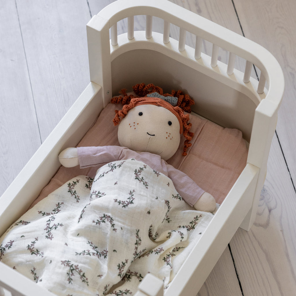 Dukkesengen er en skøn tilføjelse til rollelegen og en elegant detalje i børneværelset, selv når den ikke er i brug. Den robuste konstruktion gør, at den kan holde til mange timers leg, og den er ideel til at stimulere barnets fantasi og omsorgsevner.