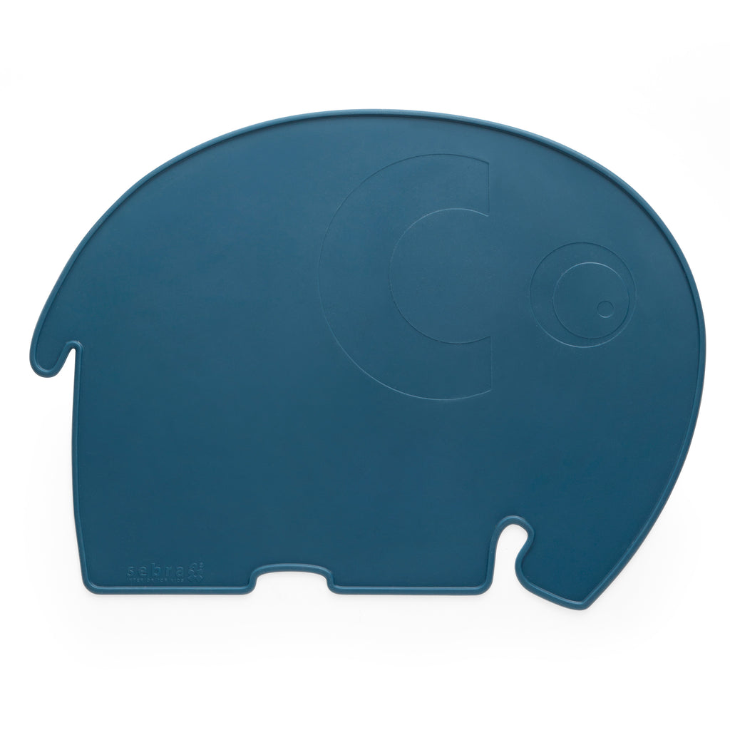 Dækkeserviet i silikone formet som Sebras klassiske elefant, Fanto - et ideelt spiseunderlag ved alle måltider, her i farven nordic blue.